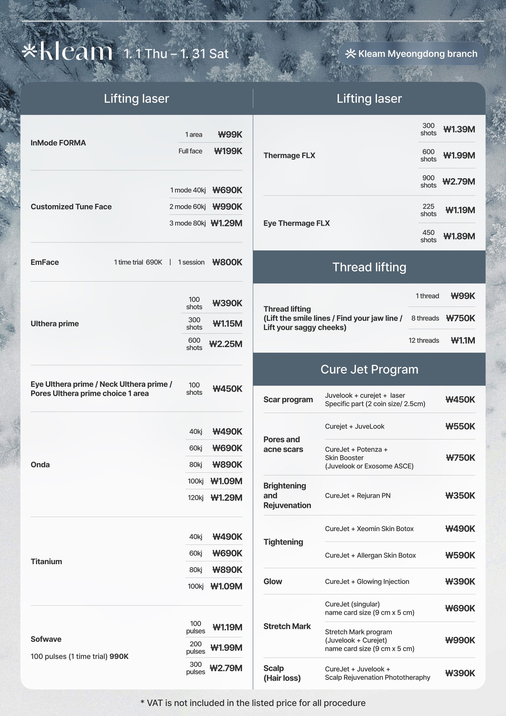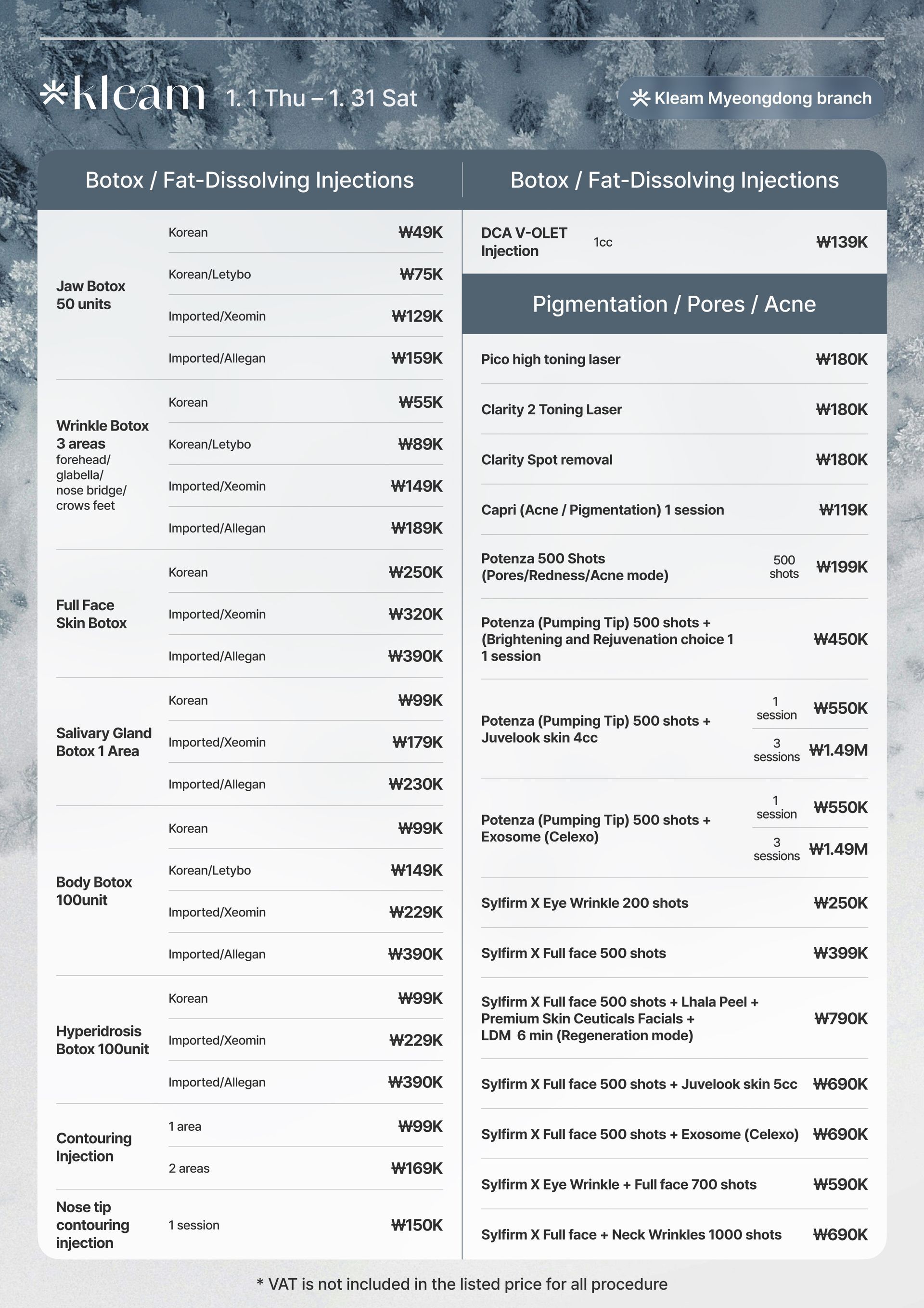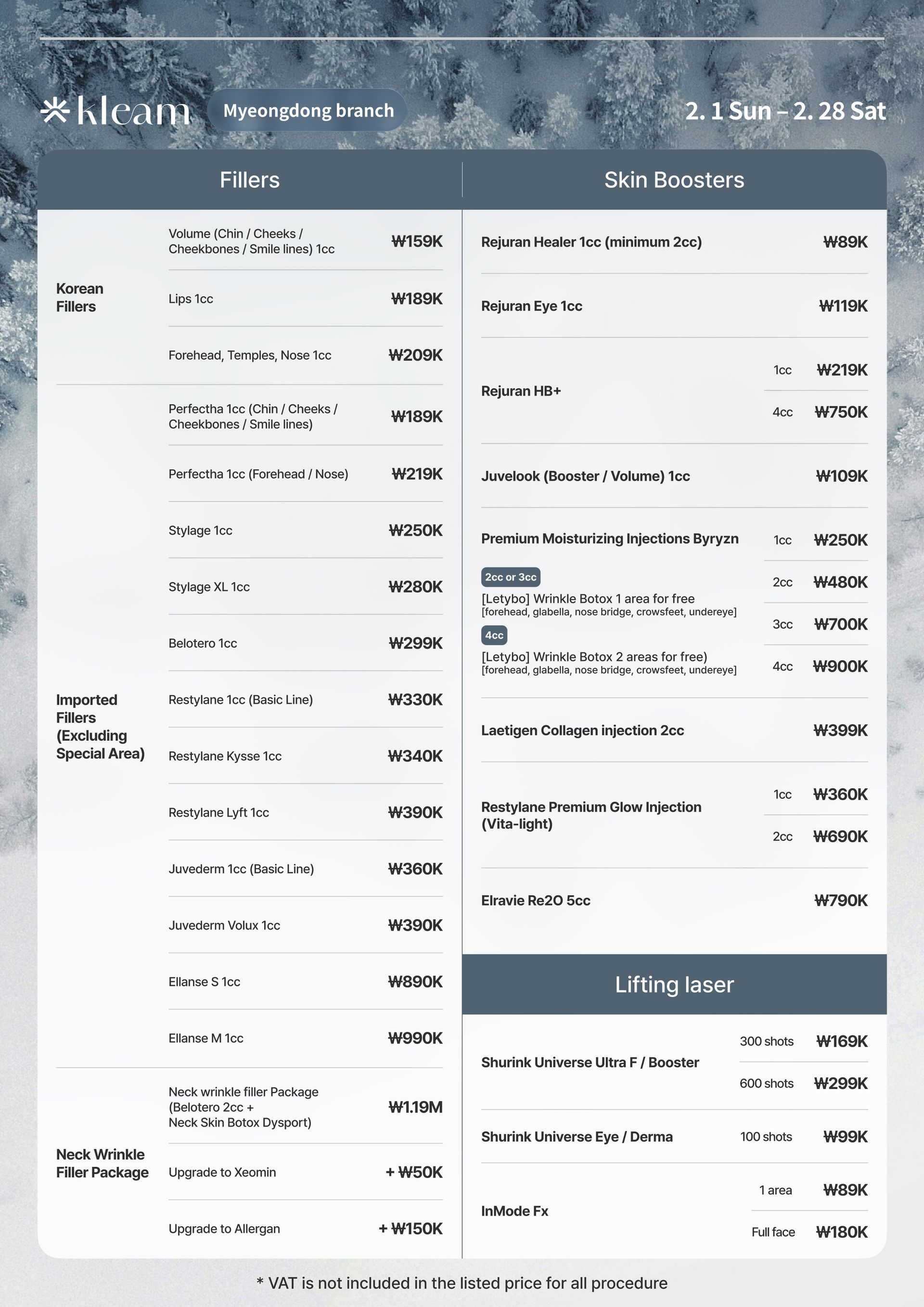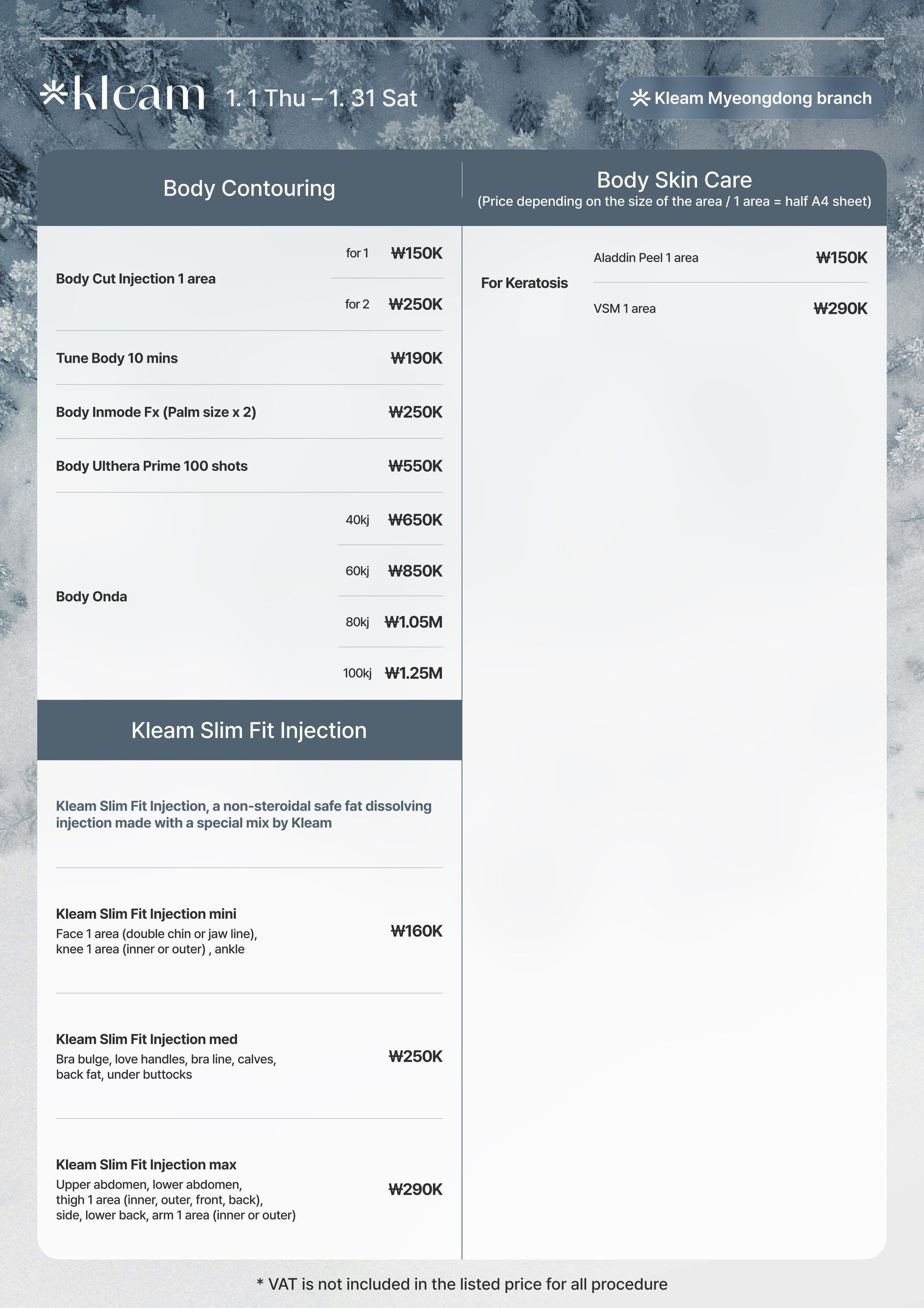 | No-Steroid Kleam Injection (1 Area) | 119,000 KRW |