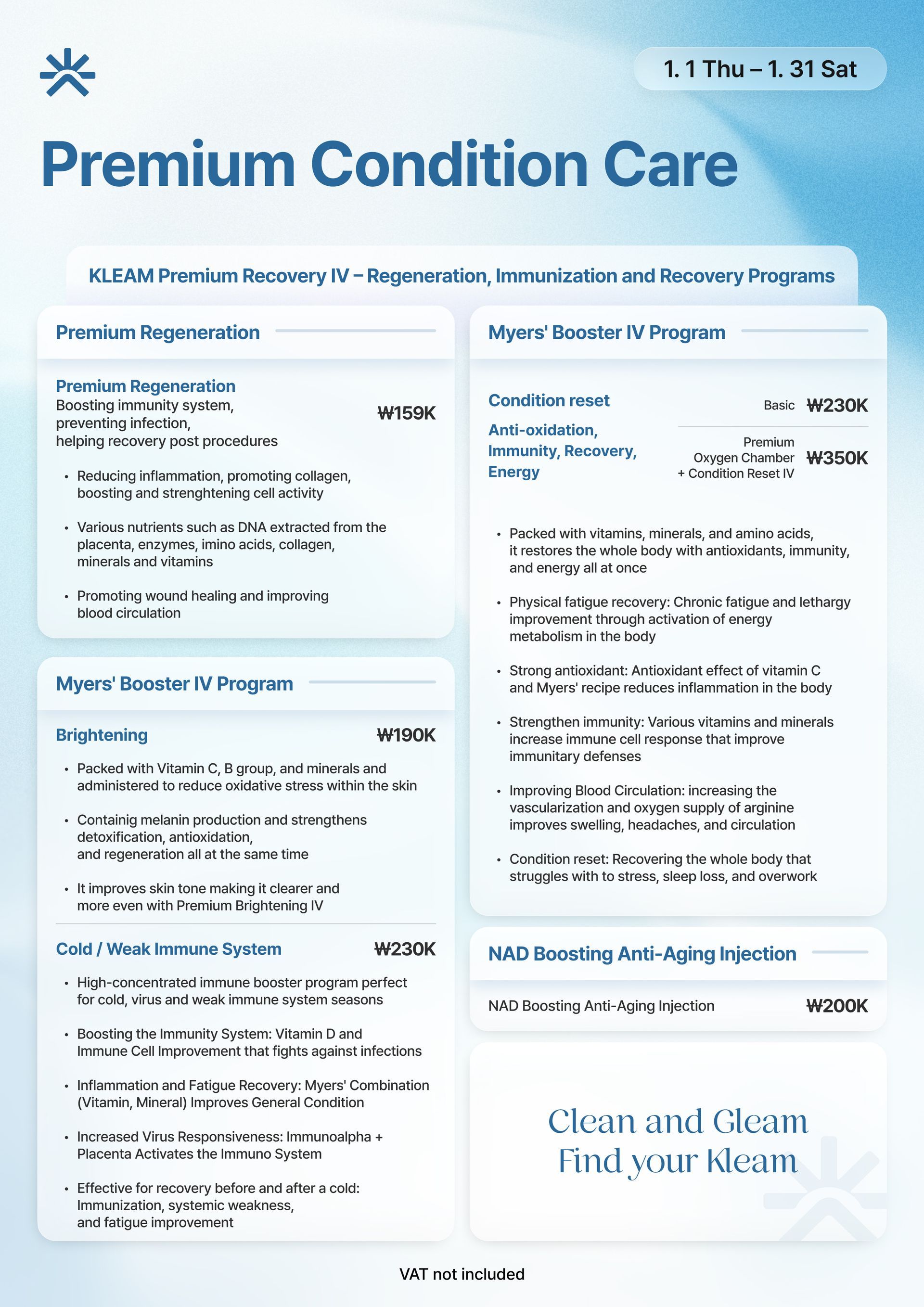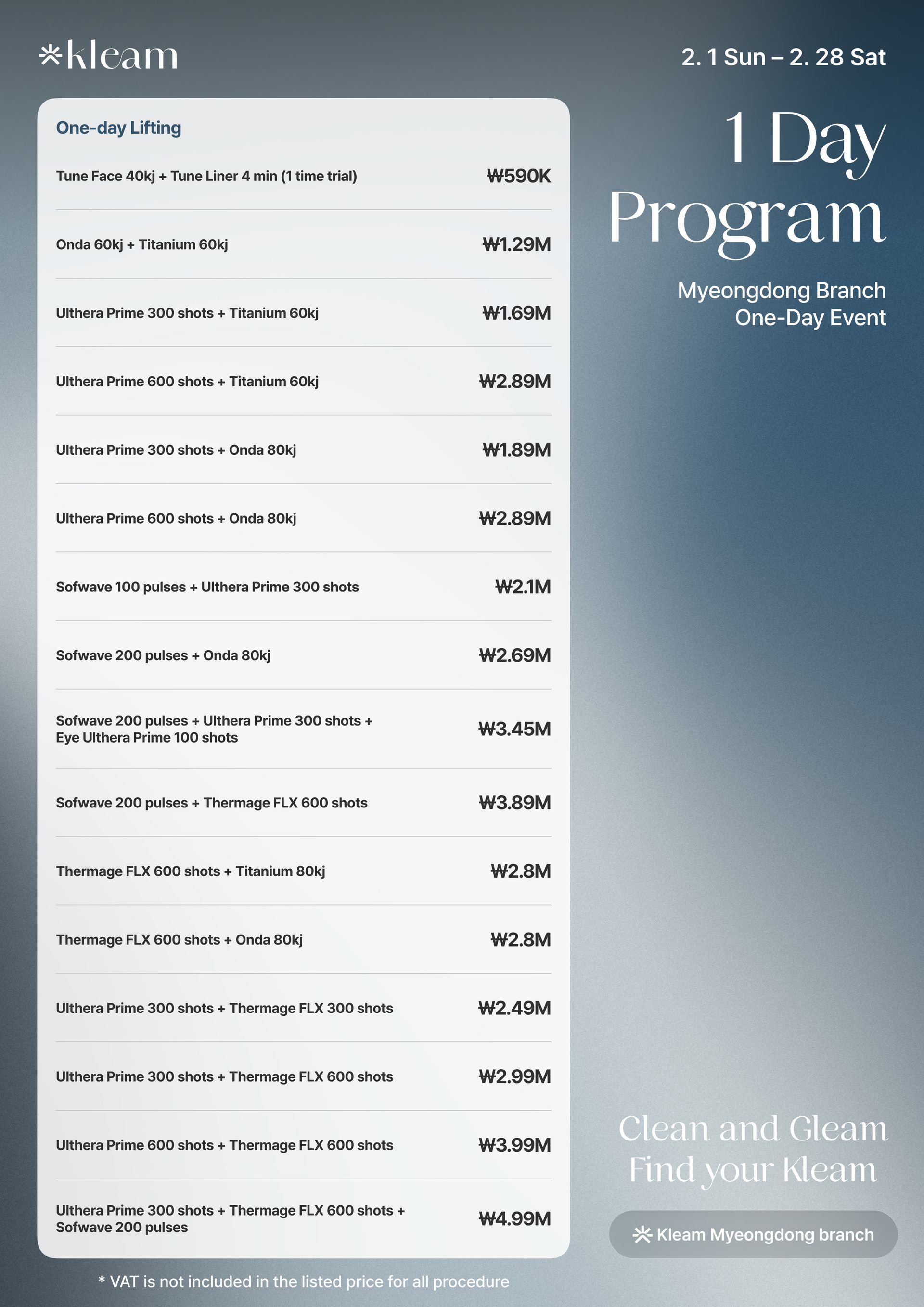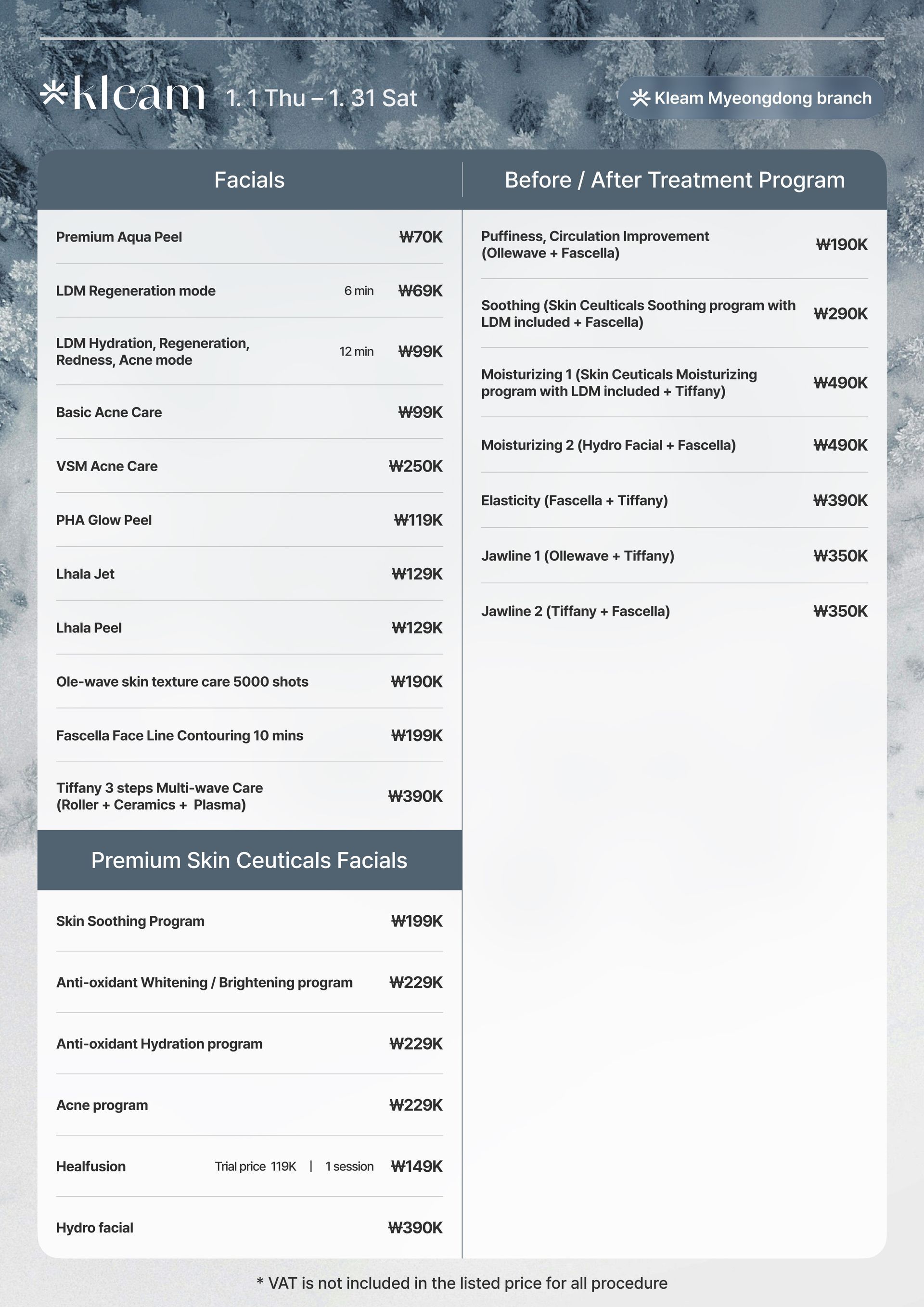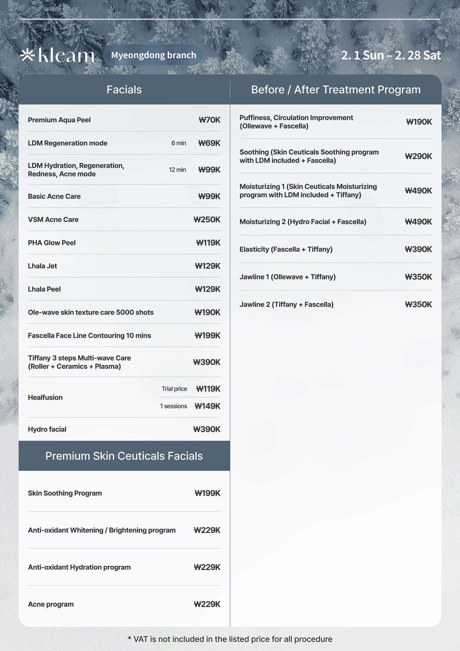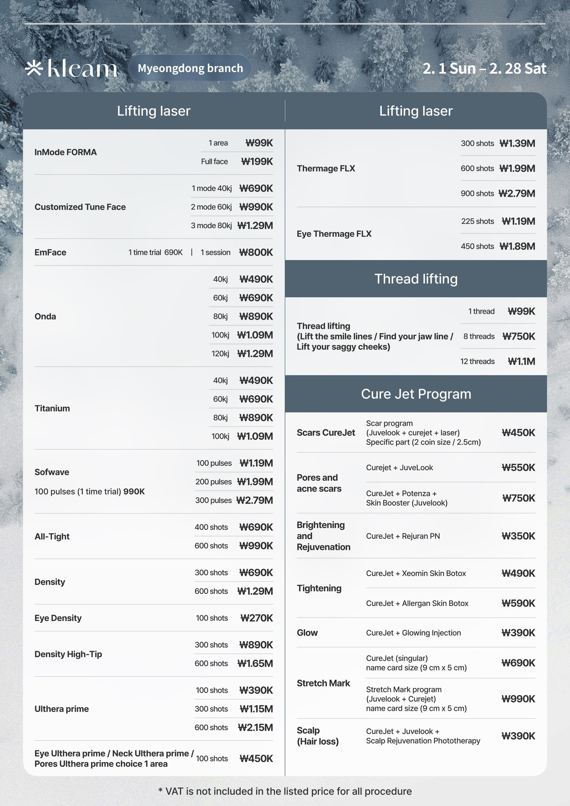 | No-Steroid Kleam Injection (1 Area) | 119,000 KRW |