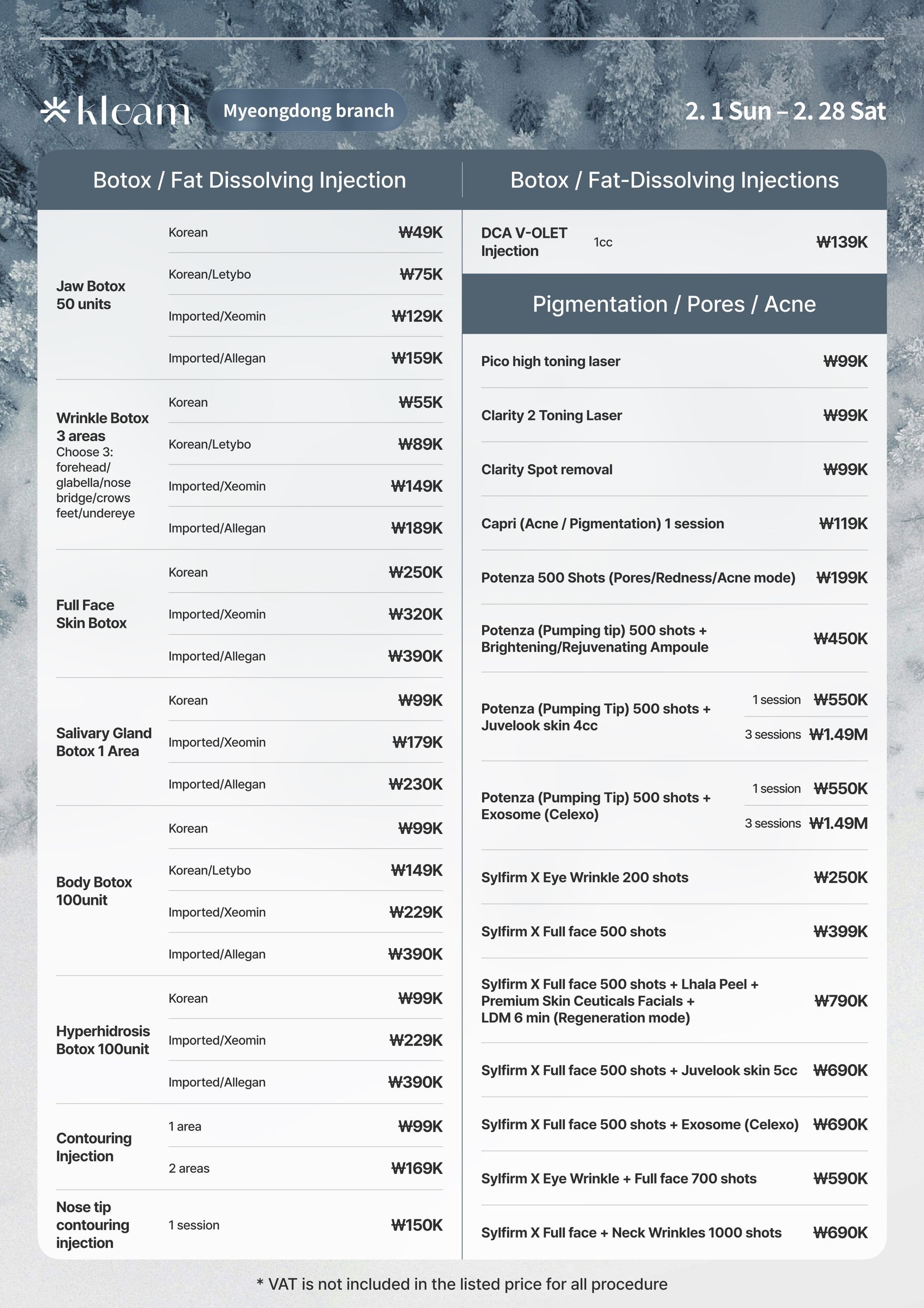 | Fat-Dissolving Injection (2 Areas) | 149,000 KRW |