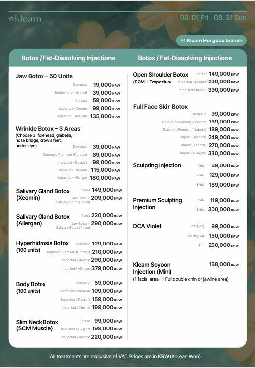 Services Offered at Hongdae Kleam Clinic